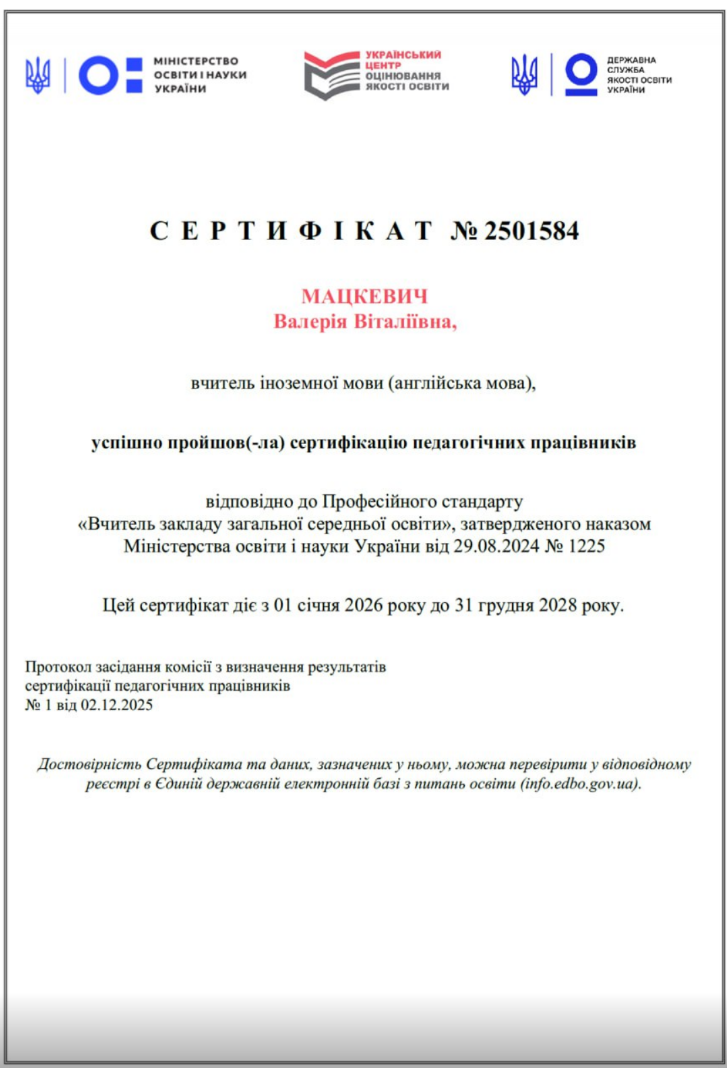 Успішна сертифікація педагогинь нашого ліцею: визнання професіоналізму та відданості освіті